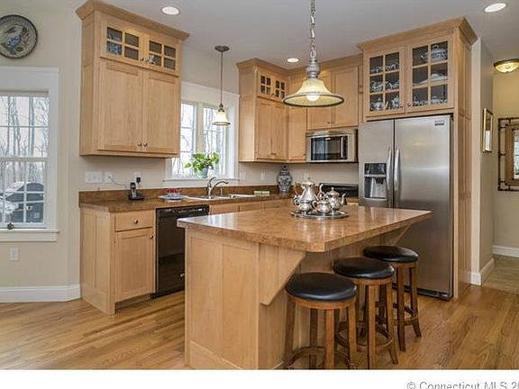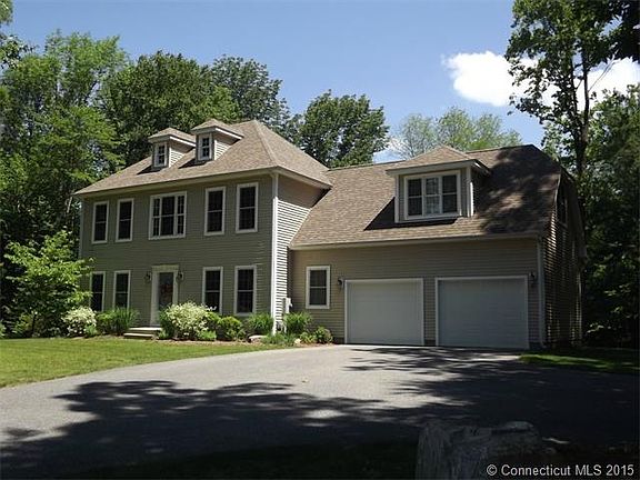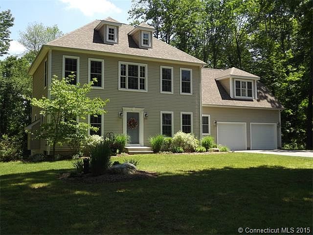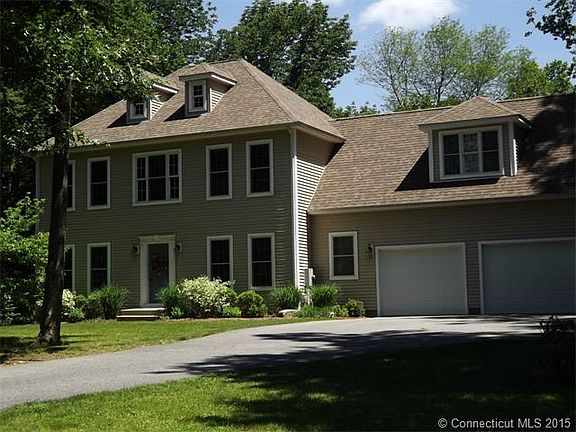 Stately hipped roof colonial sited beautifully on rolling 2.73 acres of land. Front to back Living Room with gleaming hardwood floors and a carefree gas fireplace as a focal point. Open to kitchen with breakfast bar, center island, two large pantry closets and stainless appliances. Custom cabinets ceiling height provides a fine finish look. Large dinette area flooded with light with French sliders leading to a 14x16 Trek deck. Deck overlooks lovely grounds affording complete privacy. Beautiful hardwood throughout first floor which also boasts 9 foot ceilings. Spacious Formal Dining Room for those special occasions. Large Master suite with walk-in closet and full bath. Up stairs landing leads to quaint sitting area and provides a touch of elegance to the upstairs area. You will love the convenience of the second floor laundry, located near the 3 upstairs bedrooms. Finished lower level with sliders to outside grounds provides bright and usable space. An additional half bath is roughed in for this area. There is room for expansion for an additional bedroom or office space in the huge bonus room on the second level. Raised panel doors and Andersen Windows attest to the quality of construction in this home. Conservation land across the street insures the privacy of this rural area, which has access to Hartford, Glastonbury Manchester and Shoreline. Curved driveway adds to gracious entry of this impressive home, Truly a property you must see.