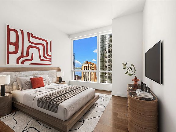Like-new FiDi condo graced with a curated palette of sublime fixtures and finishes, this Deborah Berke-designed 2-bedroom, 2.5-bathroom home is an aperture for natural light and enchanting harbor and Hudson River views. Features of this 1,328 sq. ft. apartment include beautiful wide plank white oak floors, wraparound floor-to-ceiling crystalline glass windows, airy ceilings nearly 11-ft in height, an in-unit Miele washer/dryer, custom millwork, a split-wing layout, and energy efficient electric heating and cooling with variant refrigerant flow.