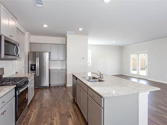 Welcome to 77 Grove Springs Ct, Cartersville, GA Park Side at Carter Grove. This brand-new floorplan offers 4 bedrooms, 2.5 bathrooms, and 2,174 sq ft of stylish, functional living space. The main level features an open-concept layout with a spacious great room and a modern kitchen equipped with gray shaker cabinets, granite countertops, stainless steel appliances, walk-in pantry, and chef's island. Durable laminate flooring throughout the main floor ensures easy maintenance. Upstairs includes a versatile loft area, three secondary bedrooms, a full bath with dual vanity, laundry room, and the private primary suite with a large walk-in closet, dual vanities, soaking tub, and separate walk-in shower. Additional features include a two-car garage, front porch, and scenic views. Located in a sought-after community with access to parks, schools, and more. EASY application process.