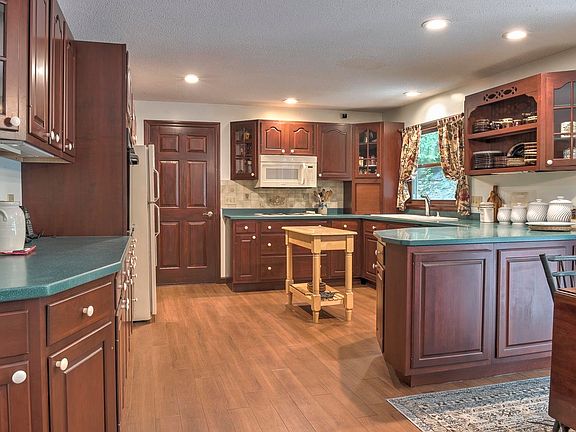 Location, Location, Location! Approx. 1 mile to Bretwood Golf Course! Sprawling Ranch style home with open concept kitchen/dining room with sliders to back deck. Custom kitchen, with ample counter and storage space. 3 bedrooms on main floor including the primary suite with full bath and slider to back deck. Newly renovated full bath, living room and den/study also on main level. Recently renovated full finished lower level is all new and features a large living room with hearth and wood stove insert, 3 more large beautifully finished rooms to use how you would like, and a dedicated laundry room + work room! All in a quiet peaceful setting just minutes to downtown Keene.