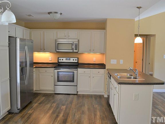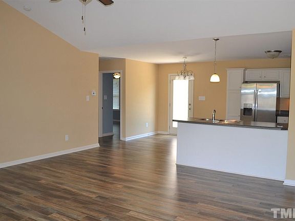 BEAUTIFUL one story home with rocking chair front porch. Open floor plan. Lots of laminate flooring. Family room is open to the kitchen that offers SS appliances and refrigerator. Split bedroom design. Master suite offers a dual vanity, garden tub, seperate shower and WIC. 2 good sized secondary bedrooms and full bathroom that has a dual vanity and large walk in shower. Patio in back is great for entertaining guests. 2 car garage. Large corner lot. A must lee!