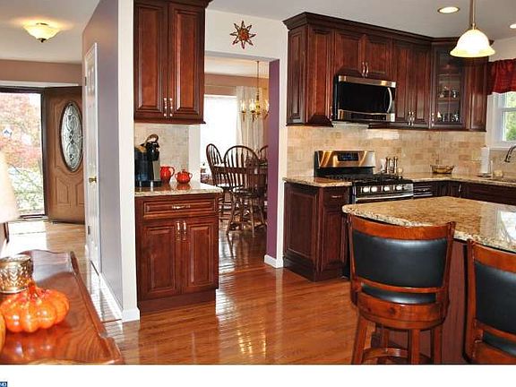 Lovingly maintained by Mr. & Mrs. Clean this 3 BR, 2-1/2 Bath Colonial is a total charmer! Completely renovated and redesigned kitchen features cherry 42' top cabinetry w/glazed finish, granite counter top, tumbled marble backsplash with under-cabinet lighting, top-quality stainless steel appliances, 5-burner gas range, oversized island and abundant lighting (2013). All new bathrooms: master bath = BRAND NEW, powder bath 1 year, hall bath 5 years....all gorgeous! Newer architectural roof, siding, windows, gutters & downspouts in 2009. Newer slate walk-way to front door and huge 28' x 20' paver patio set into a private back yard fenced on 3 sides. Oak hardwood floors on first floor, Brazilian cherry hardwood floors on 2nd floor. Sunken family room open to kitchen with brick (gas) fireplace ~ a very cozy space! Formal living & dining rooms with great flow. Finished basement for extra play-work-exercise space - clean and bright (and dry). Attached garage with newer garage door, built-in shelving, work bench with pegboard wall and attic above. All exterior and interior lighting has been updated. Baseboard moldings all updated. Interior doors and hardware all updated. Natural gas heat & cooking. Extensive professional landscaping with numerous perennials. Double wide driveway. Located in a charming neighborhood of rolling hills and curving roads with sidewalks and street lamps....and easy access to schools, shopping and all major commuting routes. Quality and class, affordably priced. Don't hesitate. Make it yours today!