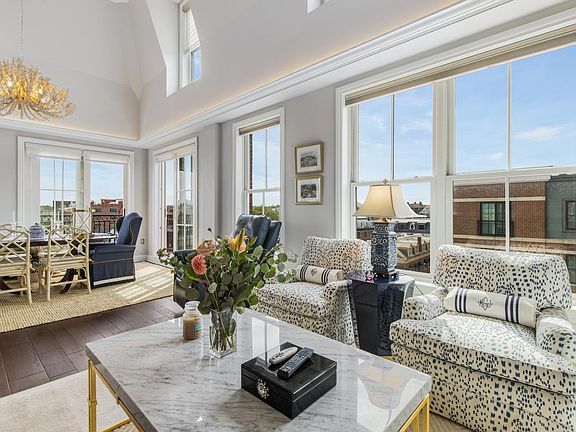 Rare opportunity to purchase the best penthouse unit at the Harbour Hills Condominium association. Pristine, move-in condition-ready and loaded with unique features and luxury finishes. Spectacular primary suite with separate sitting area with fireplace, built-ins, and a dream walk-in closet with custom built-ins. Newly updated marble primary bathroom with custom vanity, dble sinks and radiant heated floor. Guest bedroom with ensuite tiled bath with randiant heated floors. The epicurean-inspired galley-styled kitchen has quartz counters, striking custom cabinetry and Viking gas range and it is open to the grand two-story living room and dining room and all spaces are bright and cheery with excellent light and views. Custom living room built-ins feature a fireplace and a custom staircase to a second story family room or office with an exterior door to your own private 556sf (30'6" x 17'0") patio with views of the city and all that the historic downtown Portsmouth has to offer. The spacious patio offers all the exterior space you could want for patio furniture and plantings. The condominium association has direct internal access to the Hilton Hotel - enjoy a drink at the bar or a special meeting place for friends and family. You won't find a nicer unit in this building or one that is as large. There are only two duplex penthouses in the building and this is the trophy unit with excellent sunlight exposure. A comfortable place to live year round in or as a second home.