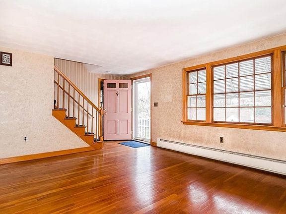 A Commuter's Delight! Classic Cape with shed dormer. First floor includes fireplace living room, formal dining room, eat in kitchen, 1st floor bedroom, sunroom with wood burning stove and lots of windows overlooking private yard, half bath. Second floor has two spacious bedrooms, eave storage and full bath. Features include lovely hardwood floors, great closet space, good size rooms throughout, lower level family room plus workshop/office with entrance to driveway (used to be a garage), newer heating, some replacement windows, deck and shed. Great location near the Stratton School, Minuteman Bikeway, skating rink, playground and bus to Alewife.