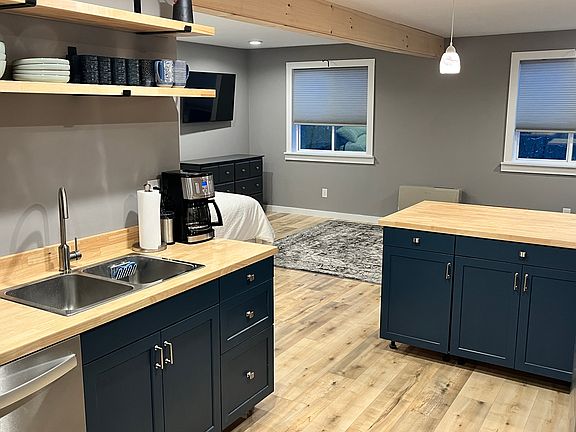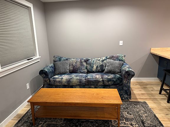 Being on a paved road in town, this place is quiet and peaceful. The home is set up on a hill above the main road but overlooks Vermont's highest peak, Mt. Mansfield. Our view has been featured in calendars and postcards around Vermont, literally. It's thoughtfully landscaped with perennials, fruit trees, garden space, a fire pit, and the house dog, Lucy, the sweetest Goldendoodle whose purpose is to findah ball, bringah ball, and droppah ball. The unit is above a detached 2-car garage adjacent to our home where our blended family thrives in a loving, kind, and curious environment. We have 3 school-age kids who split time in our home, and two adult children who are on their own adventures. We are minutes to miles of mountain bike trails, world-class disc golf courses, skiing/riding at Smuggs, hiking the Long Trail network and other trails maintained by the Green Mountain Club, and the Lamoille Valley Rail Trail.Not to mention 40 minutes to Jay Peak and Bolton Valley resorts, and not that far from Stowe and Sugarbush, so if you like sliding on snow, there are so many choices. The possibilities in recreation in this part of Vermont are endless. Corner stores within 4 miles. Grocery stores 15 minutes away. Some lovely eateries that boast some of the best pizza and brewed beer in the state. Summertime allows for quicker access to Stowe through Smugglers' Notch. Burlington is a lovely 40-minute drive away. Lots of live music, entertainment, and fun can be had. 1-6 month lease available with utilities included as long as usage is normal and non-excessive. Hi-speed Fiber internet, efficient propane heater, walk-in shower, many lighting options including nightlights in the ceiling, stainless steel appliances. This is a nonsmoking home, but 420-friendly. Parking on site for 1-2 cars.