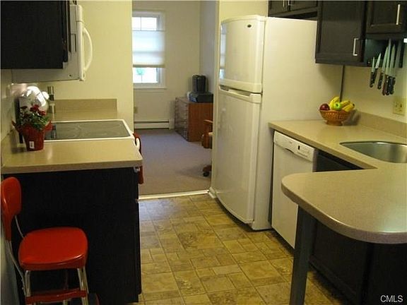Sweet, 1 bedroom PLUS Den Ranch End Unit in Brookfield's Now FHA Approved, Sandy Lane Village. Smaller, Tucked away quiet complex with pool & very close to public transport., shopping, & dining galore! Complex has in ground pool. Near bus lines "& many conveniences. Owner occupied for 30+ years! Lovingly cared for clean, neat unit has Living room w/fireplace, majority windows replaced 2004, Whirlpool Washer & Dryer 2010, Bosch DW 2010, Corian Countertop 2011, Stainless sink & Faucet, New carpet w/ex thick padding 2014, Unit painted 2011, slider to private deck. Unit has exterior storage rt at unit entry. Such a great alternative to renting, Great down size, or 1X buyer..Shows well..walk the path to home ownership #77 welcomes you home!