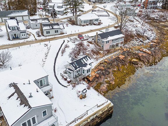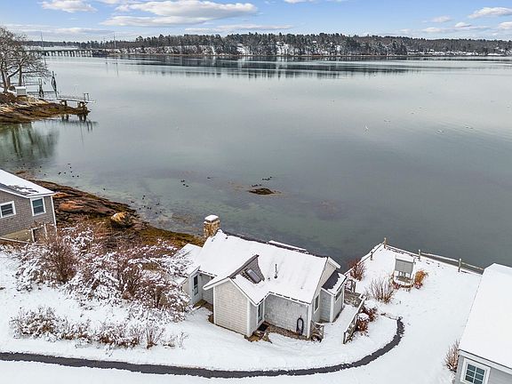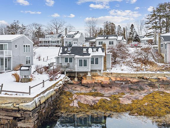 This cottage home, akin to a nautical haven on land, provides the sensation of being right on the water. From the main room, kitchen, front hallway, and deck, relish panoramic ocean views toward Cousins Island.Seawall, about twice the size of a 'tiny home,' boasts features like stained glass windows, oak floors, soapstone countertop, built-ins, fireplace, washer/dryer, tankless propane hot water, and high-efficiency boiler. Unlock the potential for first-floor bedroom possibilities, making one-level living a reality. The loft provides versatile space suitable for sleeping, storage, or hosting guests.