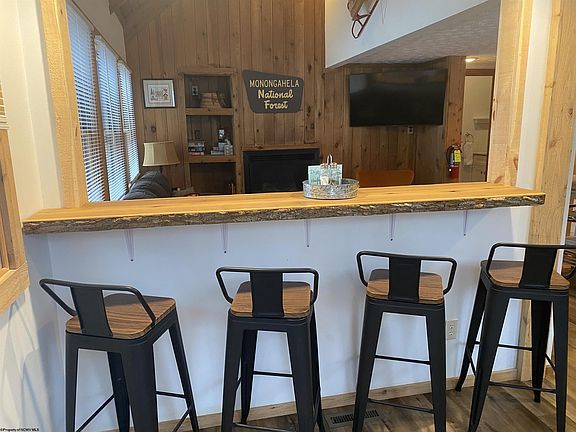 A lovely pedestal home with numerous renovations and upgrades. Quaint gourmet kitchen with new appliances, granite countertop, hickory cabinets including a sitting area with panoramic view to the living room. New wooden countertop. Movable island. Luxurious vinyl floor. Updated bathroom with new tiles in the shower and modern sink. Gas insert in the fireplace. Loft with new queen bed and a sleeping sofa. New furniture and TV. AC was installed along with HVAC central forced air gas. Three years old composite roof. Exterior with composite boards. Rap around deck looking over playground. Plenty of parking space. Short distance to resort amenities like swimming pool, tennis court and pond for fishing. Lodge available for social events. Hiking trails to US Wild Life Refuge. Black Bear Woods Resort is conveniently located in the heart of Canaan Valley and its recreational activities. A charming home with an excellent location!