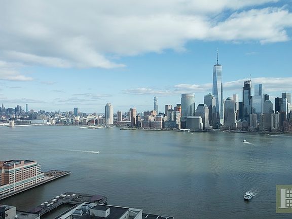 Luxurious three-bedroom, two -bathroom corner home at 77 Hudson, the most desirable luxury high-rise condominium on the New Jersey waterfront. This 35th floor home comes with two parking spaces and has 1510 square feet of living space, floor-to-ceiling windows and direct Eastern exposure, offering breathtaking panoramic views of the Hudson River and NYC that you have to see to believe! The corner location also provides exposures to the north and west for amazing sunsets. Features include an open kitchen/living area, modern Italian kitchen cabinetry, light hardwood floors, new Bosch washer/dryer and a stunning master bath with dual vanity, soaking tub and separate shower. Maintenance fees include most of the heating, cooking gas, hot water, 24-hr doorman and use of all amenities: fitness center, outdoor pool, screening room, yoga room, virtual golf, kids' play room, residents lounge and outdoor BBQ area with a gas fire pit. Located one block to the NY Waterway Ferry and two blocks to the Exchange Place PATH.