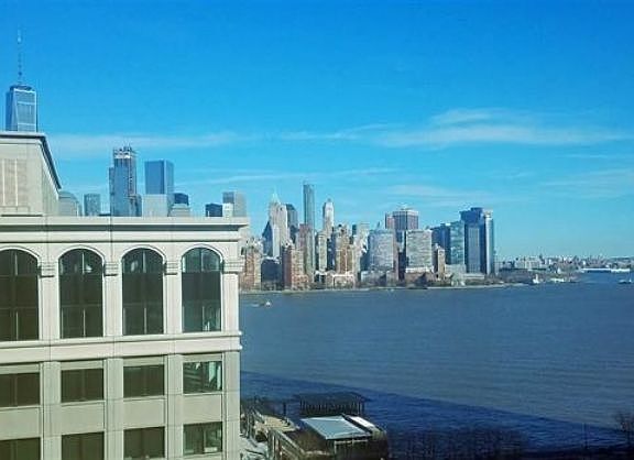 Spacious 1BR+Office with great S E exposure at 77 Hudson. This corner home boasts partial views of NYC and Hudson River, as well as beautiful southern views including NY Harbor and Ellis Island. One of the most sought-after layouts in the building; featuring Brazilian Cherry floors, Tabu Italian Cabinetry, large walk-in closet, and convenient office area which can be converted to private sleeping area or den. Over 44, 000sf of resort-like amenities at 77 Hudson include rooftop pool, hot tub, landscaped park, fire pit, full service gym, sauna, steam room, yoga, pilates and more! Prime Paulus Hook Exchange Place location offers quick commute to NYC with PATH and Ferry one block away. One garage parking space included.