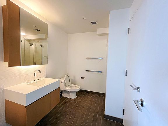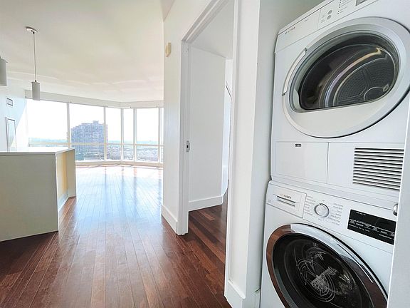 Gas, amenities, water, sewer, and trash are included in the rent. Corner, south west facing 2 bed, 2 bath with waterfront NY Harbor & Statue of Liberty views. Glass walls of floor-to-ceiling windows gives you lots of natural sunlight and breath-taking views. An open European style kitchen with top-of-the-line finishes opens up into the living room and dining area, the perfect space for entertaining. Great closet space, central air, in-unit washer/dryer and hardwood floors throughout. Over 44,000 SQFT of resort-like amenities include: 24-hour concierge, state-of-the-art fitness center, yoga/Pilates room, pool, barbecue area, jacuzzi, sauna, steam room, virtual golf, game room, playroom, multiple resident lounges, screening room, conference room, plus much more! Commuter's dream around the corner from all major public transportation (PATH, light rail, ferry), restaurants, parks, and shops. Gourmet supermarket & coffee shop at the base of the building. 1 assigned parking space on 4th floor near elevator is available for an additional $250/month. Available 7/31/2025.
