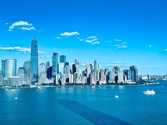 Welcome to The Stingray on 28 at 77 Hudson. The most sought-after layout in the building. The 'Stingray'; a spacious(approximately 1600sf) 2BR + Den home poised over the Hudson River offers protected, stunning panoramic views of NYC and beyond. The Stingray's design is best suited to maximize 77 Hudson's unique glass curtain wall, as it gives the home a bay window feel; you can stand in your Living Room and view three different directions: North, East, and South. This unique space offers iconic New York City, Hudson River, NY Harbor, and Verrazzano Bridge views. It is the anchor for the entire design of 77 Hudson. The Stingray floor plan is larger than the standard 3 BR layout at 77, allowing for an open living space, defined dining area, larger bedrooms, and a huge 5 piece spa-like master bath. In addition, there is a separate office which can easily double as a Guest Room; allowing you to explore options to create your own personal, customized space. This beautiful, mint-condition home features an open kitchen at it's center, with Italian Cabinetry & Carrara marble counters. This gently lived-in unit has been extremely well-maintained, and improved upon by its owner. Tasteful & functional upgrades include: gleaming wide-plank hardwood floors, dining area with built-in storage banquettes & custom lighting fixtures. Both bathrooms have been completely renovated with marble flooring, new vanities with better functioning drawers, upgraded light fixtures, recessed lighting, and more. 77 Hudson is an award-winning, architecturally significant building which seamlessly combines functionality and design, resulting in a beautiful work of art, and an icon of the Jersey City waterfront. Despite several new construction projects in the area, 77 Hudson's unique design and quality planning has allowed it to remain the best-in-class of Jersey City luxury condo buildings. 77 Hudson boasts over 40,000sf of resort-like amenities, including rooftop pool, hot tub, grill area, fire pit, staffed gym, yoga room, Pilates, steam room, sauna, and more. Prime Exchange Pl location offers quick commute to NY with Ferry & PATH just one block away. One garage parking space included. Tax abatement through 2029