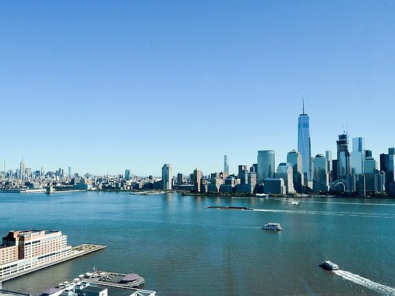 Live in Luxury at 77 Hudson. Modern 1 bedroom, 1.5 bath layout with direct Hudson River & NYC views. Apartment features 946 sq.ft. of living space with floor to ceiling glass windows, large living room & dining area, wood floors throughout, & washer/dryer in unit. Kitchen features Italian cabinetry, marble countertops, Liebherr refrigerator, Bosch cooktop, Fulgor oven, & Miele dishwasher. Enjoy all of 77 Hudson amenities including 24 hour concierge, fitness center, resident's lounge, & outdoor pool. Close to Exchange Place PATH & Ferry to NYC. 1 month brokerage fee paid by the tenant. 1.5 month's security deposit. Available September 1st.