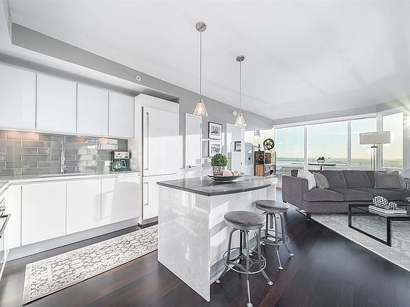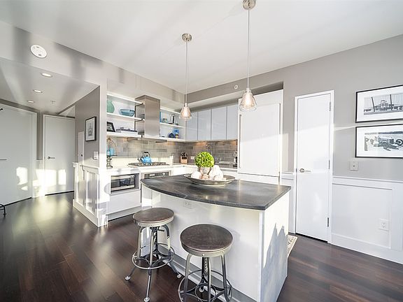 As you enter this amazing and sophisticated South Facing condo you will be captivated by the soaring views of the NY Harbor overlooking, Liberty State Park and Lady Liberty. Light embraces every inch of this home. The unit has been meticulously maintained and features handsome, impressive updates and décor throughout. The two generous sized bedrooms are anchored at opposite ends. The beautiful kitchen boasts a stunning Soapstone Island, white modern cabinetry, & Pantry – the absolute perfect place to cook and entertain. Other notables include Entry Foyer with Large Walk-in Coat Closet, Hardwood Floors throughout, New Marble Vanities in both Bathrooms, Washer/Dryer in unit, & upgraded closet systems in every room. Enjoy some of the most luxurious indoor/outdoor amenities including Fitness Center, Pool, Jacuzzi, Fire Pit, Gas Grills, Sauna, Steam & Massage Room, Virtual Golf and much more! The most desired location in the Paulus Hook area of Jersey City: Commuters Delight with Ferry, PATH & Light Rail at your doorstep. One garage parking space included. Move right in and start enjoying all this condo & luxury building have to offer!