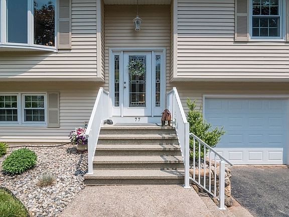 Expect to be impressed with this fantastic home featuring garage parking for 4 cars! This spacious home in a popular Feeding Hills neighborhood has a large addition (12 yrs APO) that includes an over-sized Great Room & additional 2-car garage! The layout is perfect for entertaining, including a large room with gas fireplace, cathedral ceilings & Brazilian cherry floors which opens to an attractive kitchen with beautiful maple cabinetry, granite counters, center island & atrium doors to deck with pergola. French doors lead to the expansive Great Room with gas fireplace & an abundance of windows. The primary bedroom is large & has an en-suite bath with glass shower door. Two good sized bdrms have carpet & there is an addt'l full bath. The lower level has a family room, separate lav & laundry and another set of atrium doors leading to the almost acre yard - with another deck, shed, nice landscaping & access to the 2nd garage. This home is a show stopper - with gorgeous sunset views!