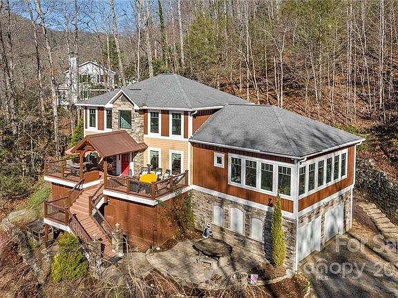 Nestled on 1.38 acres in a cozy Fairview neighborhood, 77 Ivy Cove Road gives you privacy and mountain views all year long. The soaring foyer greets you upon entry and leads you into a chef's kitchen with beautiful countertops and cabinetry that provide more storage than you can imagine! The covered back deck acts as an outdoor kitchen. The home has a traditional feel with a formal dining room, living room and family room on the main level, and 3 bedrooms and 2 bathrooms upstairs. But the primary wing on the main living level surprises you with a 358 sq ft bedroom, unique bathroom, large closet and and 10 windows for mountain views all year long. Trex decking, a new oven, two bonus rooms in the basement, and lovely landscaping round out this beautiful home. Open front deck and stone patio below will be where you spend your time in the warmer months, taking in the beautiful views! And all of this within a 15 minute drive to AVL! Be sure to see the virtual tour!