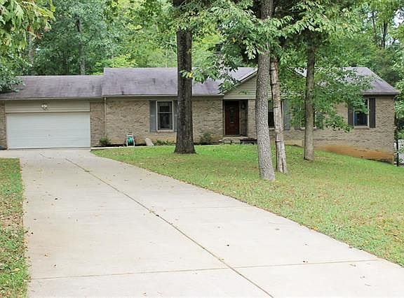 All brick ranch on cul-de-sac. New tile in kitchen and bath. Large finished basement includes family room and 3 bonus rooms currently used as bedrooms. Backs up to a common area with a view of the lake. Doe Valley is a gated community with a private late, clubhouse, pool, tennis courts and public golf.