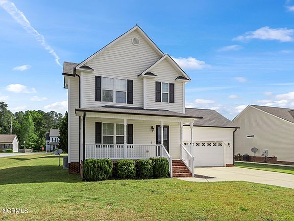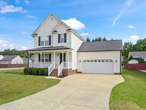 Impeccably Well Maintained 2 Story!! Enjoy all this home has to offer; Rocking chair front porch, Spacious LR covered in rich hardwood floors & flute trimmed Fireplace, Well equipped Kitchen wrapped in beautiful cabinetry, full appliance package & dining area! Spacious primary Ensuite & generously sized secondary bedrooms, 1/2 bath Powder room, Laundry room, Linen closet & Oversized 2 car garage! Ceiling fans, 2'' faux wood blinds & Refrigerator. Perfectly situated on a gorgeously landscaped & mature, manicured corner lot w/ a sizable rear deck for grilling & patio fire pit for chillin! Located in the popular Tralee community, which has a community swimming pool, golf & fitness amenities. Conveniently located between Clayton & Smithfield, with quick access to Hwy 70 & I-95, just down from the SAC, Carolina Pottery Outlet & the Coming Soon Eastfield Crossings development of Shopping, Entertainment, Hotels & Recreation!