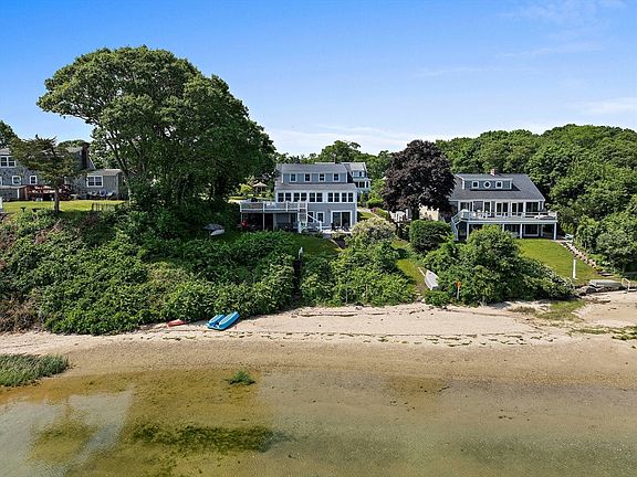 Year-Round Waterfront & Direct Beach Front with Built-In Income Flexibility. Wake up to sweeping, postcard-perfect views of Buttermilk Bay in this updated five-bedroom, three-bath retreat tucked in the coveted Jefferson Shores enclave, just before the bridge, so you enjoy Cape Cod living without the traffic. Featuring 5 bedrooms, 3 full baths, & 2 full KITCHENS, this home offers incredible flexibility w/ a fully finished walk-out lower level perfect for an ADU, in-law suite, Airbnb, or rental opportunity. The sun-filled open living/dining room w. panoramic views, hardwood floors, & a gas fireplace. Entertain easily with a wrap-around deck, patio, & beautifully landscaped yard leading to the sandy beach. The private association beach is just steps away for swimming, kayaking, or relaxing. A mooring is secured for the season, ideal for boating enthusiasts. Located just before the Cape Cod bridges, this is the perfect escape, free from traffic & flood insurance.