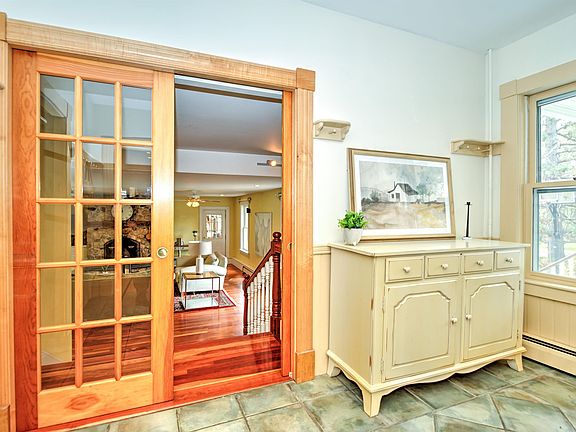 Nestled in a serene locale, just a 30-minute commute to Boston, awaits an enchanting 4-bedroom, 3-bathroom Victorian masterpiece. Meticulously preserved, this home marries the classic architectural prowess of the Victorian era with modern elegance and comfort, providing an ambiance of timeless grace. A welcoming, front porch adorned with a luxurious copper roof invites you into a world of tranquility. Inside, be greeted by the exquisite great room, boasting lustrous cherry flooring and an authentic fieldstone fireplace that echoes the allure of yesteryears, guaranteeing warm, cozy nights. The main level boasts wide plank flooring, a custom library, cozy living room and gorgeous dining room, ready to host your unforgettable gatherings. The second floor offers spacious bedrooms, office, laundry room and a walk-up third-floor attic ready to be transformed into additional living space, a studio, or whatever your heart desires. There is plenty of outdoor entertaining space with a screened in porch leading to an oversized deck and patio, surrounded by privacy and tranquility with a beautiful private backyard. Additional features include a whole house auto generator, NEW furnace and hot water system. Don't miss this rare opportunity.
