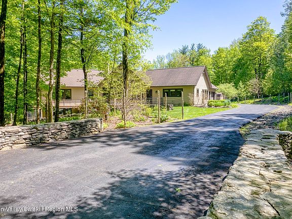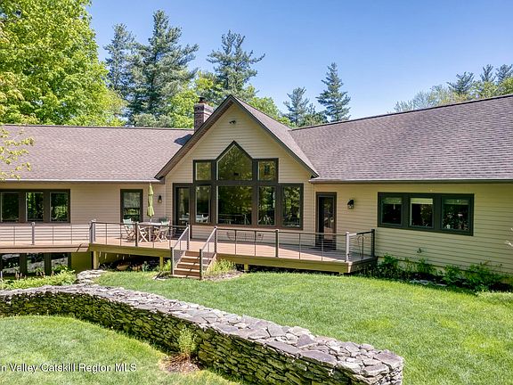 Fantastic Contemporary featuring Windows Galore! Exactly what you would want in this Beautiful 10.90 Acre Forested, Rambling Streamside home with Private Patio and Cooling off Oasis! Long Paved drive to this 3 Bedroom, 2.5 Bath home. Gleaming, Hardwood flooring throughout !Huge Gourmet Kitchen with Center Island, Recessed Lighting, Plenty of Cabinet Space, Great Room Features Vaulted Ceilings, Brick Gas Burning Fireplace, 2 Bedroom, with Shared Bathroom, Laundry Room and Huge Primary EnSuite all on the first floor! Over 2640 Square Feet! Wonderful Cable Railing and Decking with unobstructed Views of the property!