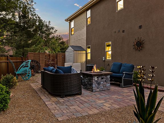 Upstairs bedrooms frame iconic red rock views, while the over-sized backyard offers a peaceful escape with mature landscaping and a cozy seating area for stargazing or evening chats.