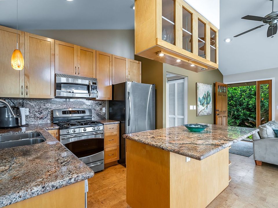 Private, quiet, and contemporary, this beautiful fully furnished 1 bedroom, 1 bath approximately 594 sq. ft. cottage is located in the popular neighborhood of Kula Kai. You will enjoy the high ceilings and large windows to take in the unobstructed Haleakala Ranch. Sliding glass door to step outside to your private lanai here you can enjoy sipping your favorite beverage as you ponder the majesty of Haleakala Ranch from your own backyard. As you enter the spacious open concept floor plan with cork flooring throughout, the living room has all the furnishing with a flat-screen TV, the kitchen is fully stocked, with granite countertops, and all newer stainless steel appliances, including a gas range, dishwasher, and microwave. The bedroom has a comfortable Queen Tempur-Pedic bed with a large closet the ensuite bathroom has a luxurious vanity sink and walk-in shower. The rent includes electric, water, gas, internet, landscaping, and trash service. A washer and Dryer in the cottage is an added bonus and parking for 1-2 vehicles is permitted in the driveway parking space. No Smoking, No Pets Rent = $2,513.09 ($2,400.00 + GE Tax $113.09) Available Now 6-Month Lease Rent Includes All Utilities - Electric, Water, Gas, Trash and Landscaping Services, and Internet Fully Furnished Cottage with all Utilities Included