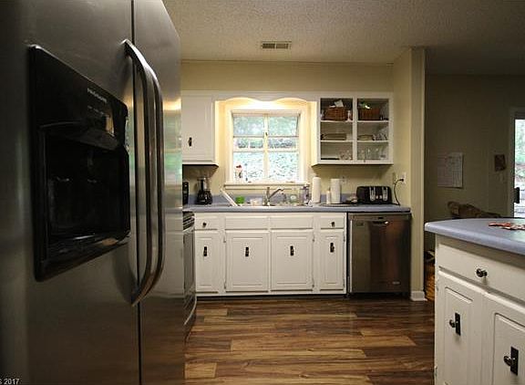 One level creekside home 5 mins from Downtown Brevard. New kitchen with stainless steel appliances, wood-burning stone fireplace, renovated bathroom with tilework. Listen to the creek that runs the property boundary from the porch or establish a picnic area by the water. A large front patio for entertaining or just relaxing. Garage has been recently renovated with a new garage door and fresh paint on walls and ceiling perfect. New retaining wall along with the back patio. The driveway has recently been re-paved. Must see home for anyone looking for low maintenance and centrally located home. The propane wall unit has never been used by the seller and is not connected.