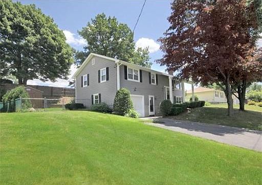 Super location for this stunning home ! Central air, newer roof, siding, retaining wall, shed, and fencing. New high efficiency gas furnace, extra insulation recently added, and very low utility costs ! Open floor plan. Walk out to your private deck from dining area, enjoy the beautiful yard ! Recently updated bathroom. Lower level has bright family room, wood stove and half bath. Spacious mud room, and much more . . . Easy access to Mass Pike !
