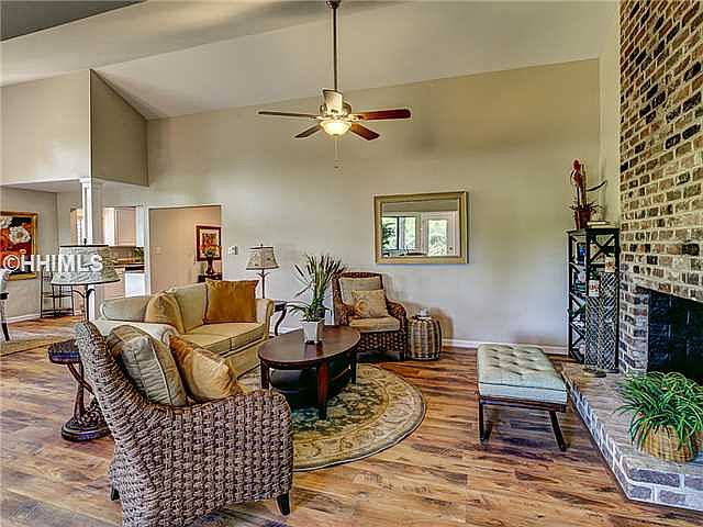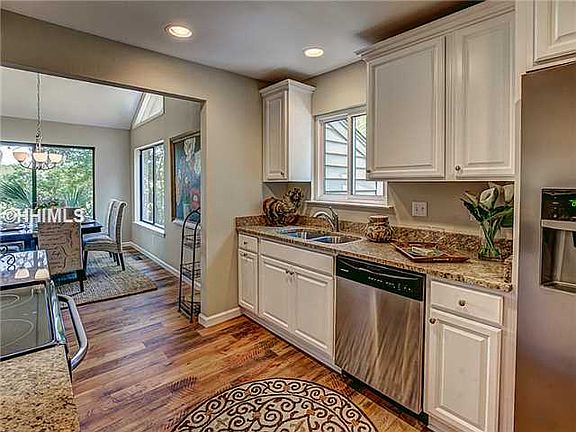 Come see this LIKE-NEW home just minutes from the beach in Sea Pines. A spectacular renovation from top to bottom by Sunburst Homes has transformed this nearly-2,500SF, 2-story floorplan into a showcase home! The light/bright, open design boasts a gorgeous reconfigured granite/stainless-steel kitchen, great room w/ rich laminate wood flooring & fireplace, glass-filled Carolina Room w/ lagoon & garden views, oversized 1st-floor master suite w/ custom bookcases & abundant closet space, lavish all-new master bath w/ custom twin-head walk-in shower, & enviable 2nd-level guest space. More recent additions are a third full bathroom and a large deck.