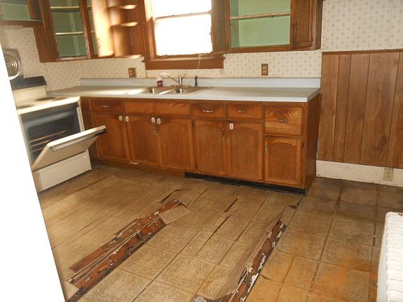 Spacious home with possible 2nd floor master suite with sitting rm and den/nursery. Caution some wood flrs are buckled. pipes have freeze damage. Needs considerable rehab and would be a great FHA 203K.