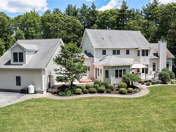 Expansive colonial w/3724 s.f. ABOVE grade will meet all of your needs; sophisticated design & exceptional craftsmanship combine to offer a spectacular residence. Highlights include soaring ceilings, custom millwork, & large windows which allow for sun filled rooms throughout. Entertainment sized kitchen is cabinet packed & includes a walk-in pantry. Great rm has soaring, vaulted ceiling, built-in wall units, & gas fireplace. Above the 3 car garage is a dedicated guest suite w/ bath. Spa day can be everyday when you relax in the zen like sauna or in the hot tub. You'll love the workshop space in the 22'x30' additional garage with 12'x30' covered parking. Primary suite has 2 walk-in closets, bath, & adjacent home office. Landscaping is second to none on this private, level lot; irrigation, custom walkways & hardscaping, a garden, and fire pit. Too many features to list! Lovely location close to state forest trails, golf, shopping, and commuter routes.
