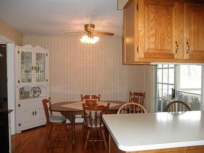 LOVELY HOME, NEIGHBORHOOD SETTING WITH BEAUTIFUL FRONT PORCH and WALK WAY, SCREENED PORCH WINTER ENCLOSURE OF INSERTABLE WINDOWS. UPDATED MASTER BATH, KITCHEN W/SOLID OAK CABINETS and BREAKFAST BAR DINING RM IS 12 X 11 WITH LOVELY HARDWOOD FLOOR AND GLASS DOOR TO 3 SEASON PORCH OVERLOOKING SPACIOUS PROPERTY, BASEMENT HAS LAUNDRY ROOM, WORKSHOP and CLOSET PARTIALLY LINED WITH CEDAR. 3 ZONED HEAT, CENTRAL AIR, HARDWOOD FLOOR IN LIVING ROOM UNDER CARPETING DINING ROOM UPSTAIRS HALL AND BEDROOMS. PRIVATE YARD WITH WOODS IN REAR.!
