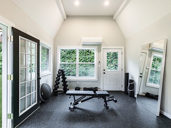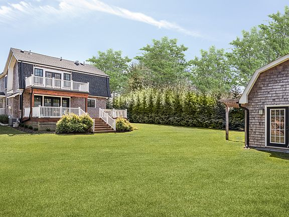 Experience comfort, convenience, and privacy in this beautifully appointed 4 Bed, 4.5 Bath home complete with fully equipped gym in guest house. Upon entry you will find beautiful millwork and hardwood floors throughout, a spacious dining room, butler's pantry and built in wet bar. Further the 8ft marble island connects the open chef's kitchen with a cozy living space finished with fireplace and covered grill and outdoor dining table. The first floor also has a half bath, walk-in laundry room, and separate guest suite with en-suite bath and private exterior entry. Upstairs you are greeted by soaring 12ft ceilings in the Primary suite with 10x10 en-suite bath, walk-in closet, and private outdoor balcony. To the left and right are two large guest bedrooms, each with en-suite bathroom one with a CA King Bed and the other with two Queen Beds. There is a fully finished basement with exterior door, a working study and media room. The air-conditioned gym is a short walk across the backyard and includes water cooler and the MIRROR Fitness Trainer. Home has Nest, Central HVAC with de-humidifier. Upgrades include: Nespresso, linen sheets, memory foam mattresses, and baby changing table/crib/stroller upon request. This home is less than 1 mile from the SH Jitney and Train Stations, a 6 min to Flying Point Beach, comes with a resident parking beach pass, 5 minutes to Southampton Village, 8 minutes to Village of Bridgehampton, and 14 minutes to Sag Harbor. Available for the season or year round, fully furnished.