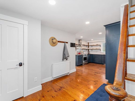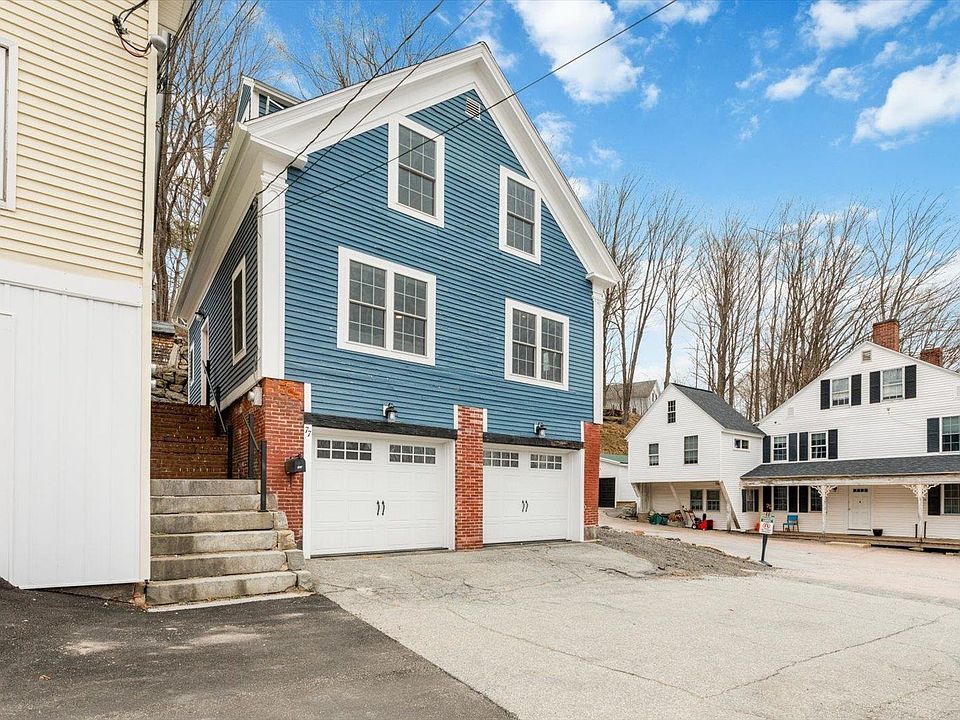 Welcome to 77 Main Street! This federalist-style home's original structure was built in 1900, but it underwent a bones-out renovation in 2019. Positioned high on Main Street, you are sure to enjoy the bird's-eye view of downtown Peterborough's historic buildings. Featuring three stories, including the under-house two-car garage, the first floor opens up into the common living areas which pay homage to the original 1900s build with wide plank floors throughout, original corner beams and staircase railing, and the Rumford brick fireplace. The kitchen showcases a modern touch with soapstone countertops and floating, exposed wood shelving. Upstairs you will find three bedrooms and a full bathroom with laundry. Ample storage throughout the home. Spray foam insulation, new windows, towel warmers in the bathrooms, new appliances, and a new high-efficiency heating system bring this home into the 21st century. Multiple outdoor spaces include a private outdoor patio and hillside seating area. Conveniently located only a short distance from Adams Park & Playground and a lively downtown, Peterborough is home to the Peterborough Players and the MacDowell Colony, as well as many fine restaurants and shops - there is no shortage of activities. Just one hour from Manchester/Boston Regional airport and 90 minutes to Boston Logan International Airport.