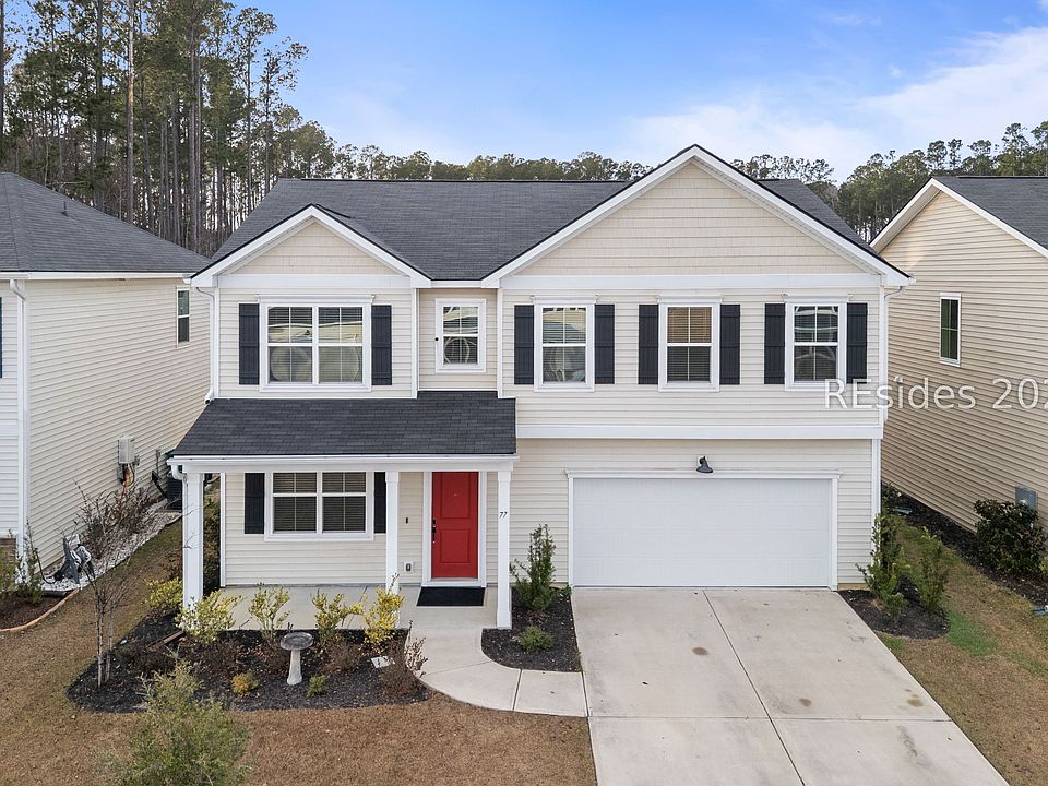 Welcome to this beautifully maintained 2022 single-family home in the gated Lakes at New Riverside community, where modern design meets everyday comfort. Offering a spacious 4 bedrooms, 2.5 baths of thoughtfully designed living space, this move-in-ready home delivers a flexible layout ideal for both entertaining and daily living. The open-concept main level features a bright, spacious living area that flows seamlessly into the kitchen. Designed with both style and function in mind, the kitchen includes quartz countertops, double ovens, a gas range, an oversized island, and a large walk-in pantry. Upgraded hardware, smart home gadgets and fixtures throughout the home add a polished, high-end modern finish. Upstairs, the owner's suite serves as a private retreat with a spa-style bath featuring dual vanities, a walk-in shower, and two separate walk-in closets, including one extensively customized for exceptional storage and organization. Three additional bedrooms, a versatile loft-style flex space, and a generous media or bonus room provide ample options for work, guests, or recreation. Recent updates include fresh interior paint, new lighting, and updated ceiling fans throughout. Outdoor living is equally inviting with a screened porch overlooking the fully fenced backyard, complete with a storage shed for convenient outdoor storage. A two-car garage adds approximately 400 square feet of additional space. Residents enjoy gated access and resort-style amenities including a pool, pickleball courts, dog park, playground, BBQ grills, fire pit, and direct access to over five miles of the New Riverside paved trail system for walking, biking, and exploring. Thoughtfully upgraded and impeccably maintained, this home offers comfort, storage, and lifestyle in one of Bluffton's most desirable communities.