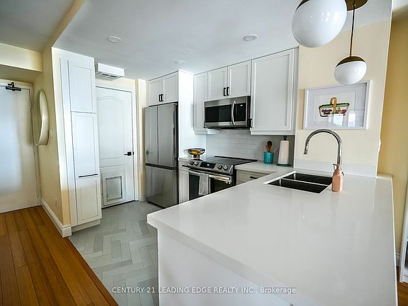 Welcome to your dream condo at Celebrity Place! This beautifully renovated 2-bedroom, 2-bathroom unit has been lovingly owner occupied, evident from the moment you walk in. As soon as you enter, you will notice the large windows fill the space with tons of natural light, making the unit feel bright and spacious. The kitchen is a home cooks paradise, featuring new stainless steel appliances, quartz countertops, a deep double sink, and beautiful porcelain herringbone tiles. The separate pantry room and additional pullout pantry cabinet offer ample storage as well. Step out onto the huge balcony, perfect for enjoying the stunning view facing South-East. Both bathrooms are completely updated, featuring a stunning walk-in shower in the ensuite and a deep soaking tub in the second bathroom. Wide sinks, deep vanities, and dimmable lighting in both bathrooms. You don't want to miss this gem!