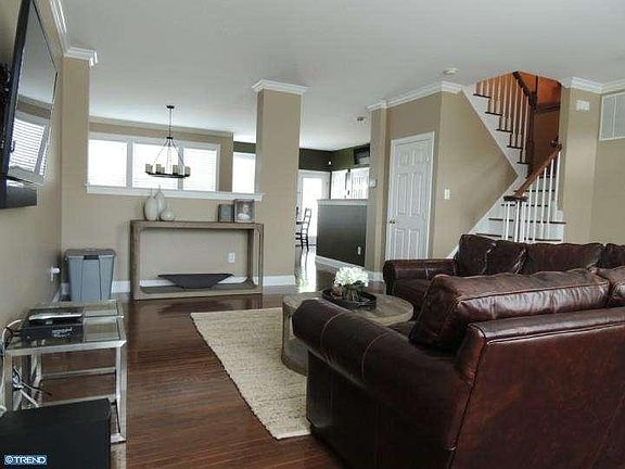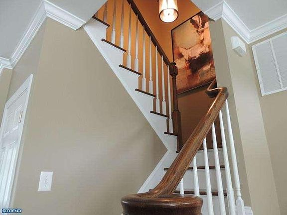 Stunning townhouse awaits you in desirable Washington Town Center. Beautifully and tastefully decorated with 3 bedrooms, 2.5 baths, (main bath remodeled in 2017), finished basement and one car garage. The first floor boasts gleaming hardwood floors, crown molding and features 9" ceilings, powder room and a spacious living and dining room area. The eat in kitchen is outfitted with 42" cabinets, stainless steel appliances, granite countertops, tumble marble backsplash and overlooks the beautiful wooded backdrop and fenced backyard. The oak thread stair case leads you to the second floor where you will find the master suite with custom walk-in closet and brand new private master bath featuring dual vanities and tile stall shower. Two additional bedrooms, storage closet and a hall bath complete the second level. Full finished basement offers great space for an office, gym or family room. Home is located on a premium lot with park across the street and private garage alley way in the back. No association fees. Conveniently located in the heart of Robbinsville with easy access to schools, Hamilton train station and major highways.