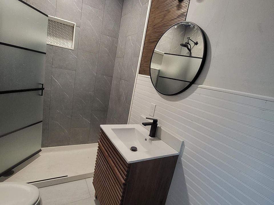 Newly renovated first-floor unit for rent: - Kitchen has new butcher countertops, new hardwood floors, new dishwasher, new backsplash, new lower cabinets, gas cooking counter top, farmhouse kitchen sink . (new plumbing and hardware). - Bathroom has new tile shower, new tile floors, new sink, new mirror, new hardware. - Bedrooms have new floor, new lights, and oversized windows. - Living room has newly resurfaced hardwood floors and oversized windows. - Yard includes grass lawn, trees, - 1 mile to walk/bike to on biking trail. - Located in quiet neighborhood 1 mile from downtown Manchester . - 1 mile from Catholic Medical center and 3 miles from Elliot Hospital. - 1 mile from Rt 293. - 2 parking spots in driveway and street-side parking available. Tenant has 2 parking spots in driveway (one behind the other) -side parking as well. No smoking on property. No guns on property. $50 monthly fee to cover water (combined in building) Month to Month lease