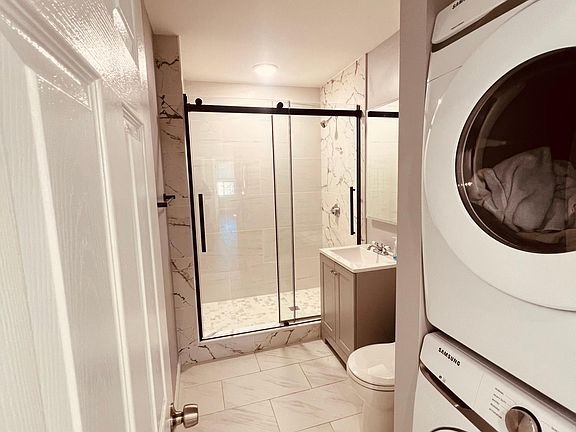 Laundry in unitCentral airGranite counter topsModern kitchenStainless steel appliances