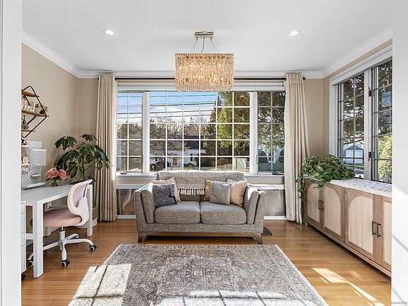 This classic colonial offers spacious, light-filled living and dining areas anchored by a recently renovated eat-in kitchen. A comprehensive renovation and expansion in 2007 brought modern systems, updated finishes, and a more functional layout, giving the home the fresh feel of a much newer build. With four bedrooms-three upstairs plus a generous first-floor guest room-and an optional fifth bedroom ideal for a nursery or home office, the home provides remarkable flexibility. A full unfinished basement offers abundant storage and future potential. Outside, enjoy perennial plantings, a private level backyard with a vegetable garden, and a roomy two-car garage. Just minutes from the Noroton Heights train station, Darien Commons, and Hindley Elementary, and close enough to bike to Weed Beach on warm weekends.