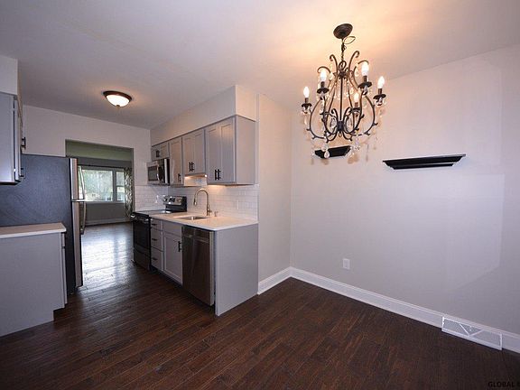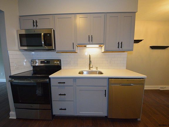 Newly remodeled 2 bedroom, 1 bath in a side-by-side duplex! Top rated Bethlehem Schools. Serene and peaceful suburban setting is near Slingerlands Elementary, park and the rail trail. Hand-scraped hardwood floors throughout. Stylish eat-in kitchen with quartz counters, painted cabinets and stainless steel appliances. Large family room! Custom tiled bathroom with shower/tub. Great deck for summer barbecues! Easy commute to Albany and Schenectady. Includes garage parking in basement level for one vehicle and driveway parking for another. Tenant pays electric and gas. Credit and background check, income verification required.