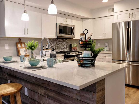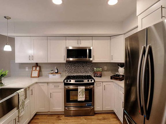 Completely renovated 2 bedroom, 2.5 bath condo in the very desirable Villas at Poplar Brook community. Kitchen with new white shaker cabinets, Carrera Marmi quartz countertops, subway tile and glass tile backsplash, new appliances, farm style sink, and peninsula featuring reclaimed wood shiplap. New laminate floors. Open layout with double sided fireplace great for entertaining guests. Large master br with vaulted ceilings and bay windows. Master bath with double sink vanity, soaking tub, and standing shower with custom tile work. Bonus loft room on the second story can be converted into a third bedroom. Second full bath and half bath both remodeled. Heating system and central air less than 2 yrs old. Two car garage and two attics for storage. Complex also includes a pool/tennis court.