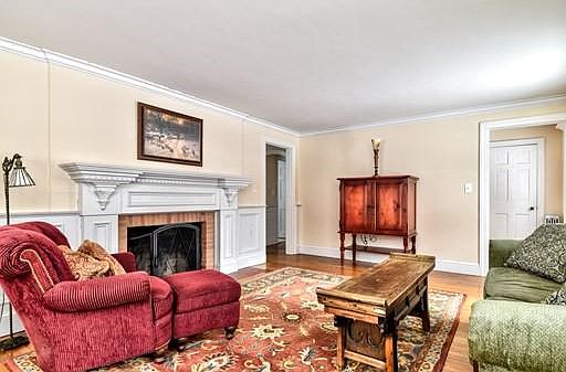 Quaint expanded Cape Cod style home with beautiful woodwork and hardwood floors situated on a corner lot in a desirable neighborhood. The gorgeous family room with pretty fireplace including custom mantle, crown molding and wainscoting is the perfect room for large gatherings. Like the rest of the home, it has wonderful natural light. The large eat in kitchen has newly painted white cabinets, a fireplace for the cold winter nights, and sliders which open to a newer patio and fenced back yard. Upstairs are two bedrooms, a full bath and a large cedar closet off the hall. Both bedrooms feature charming built ins. PLS NOTE - Home currently has only 2 bedrooms which are upstairs. The first floor previously had two additional bedrooms. which are currently being used as a dining room and living room. If buyer wanted 3 bedrooms, they would only need to put the bedroom doors back on. If they wanted 4 bedrooms they would have to put a wall up. Lots of possibilities and TONS OF CHARACTER!