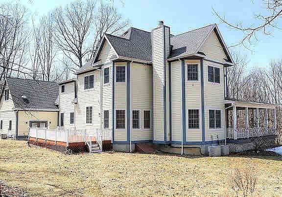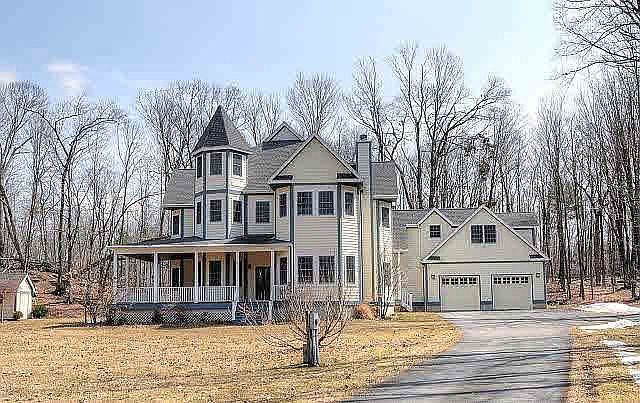 This 4424 SF modern Rhinebeck Victorian home with a luxury style & ambiance is back on 3.62 totally private acres yet is steps from the Village line & a short walk to the Village center. Custom built in 2005 w/entertaining in mind, this 4 BR, 3.5 bath beauty has large, light filled rooms, 11 foot ceilings, 2 stone FPLs, CA, a beautiful EIK w/granite & a walk-in pantry, formal DR, office, large MBR suite, 21 x 49 studio, glorious wraparound porch & huge garage.