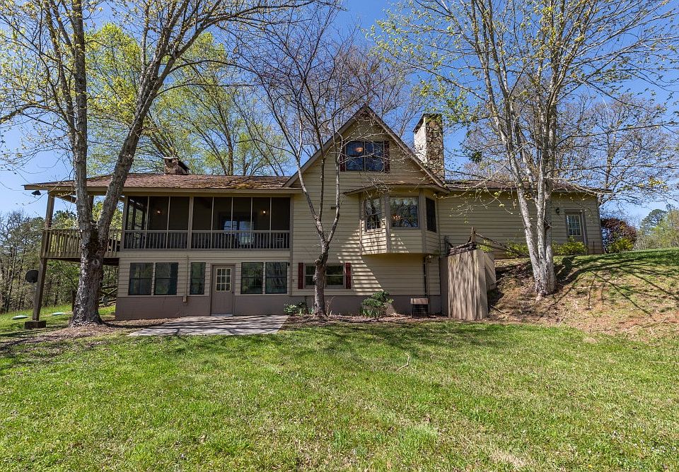 Your relaxing mountain home awaits with a roomy 1859 sq ft of split-level living space and lots of natural light situated on a peaceful 23.77 acres of gentle land in the Trackrock area. The main-level LR features wood-paneled cathedral ceilings, exposed beams, a stone fireplace (wood-burning), and 2 double-paneled French doors that open onto a wraparound porch and screened deck with mountain views. Spacious eat-in kitchen with stone fireplace (wood-burning). Owner's suite on main plus 2 bedrooms and 1 bath upstairs which features a skylight. Terrace-level 2nd laundry room, plumbed bathroom, plus loads of sunny, unfinished space with amazing potential and lots of windows. All-electric, central HVAC, private well, and 2-car garage. Includes a barn and a metal outbuilding with power. This very well-cared-for home is just waiting for its next family! Conservation covenant added 3/1/22.