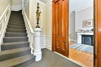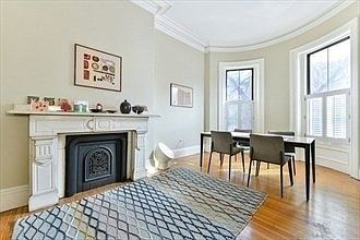 Excellent Location!...Situated on one of the most picturesque streets in the city, this sunny triplex unit boasts 3 bedrooms, 1 1/2 baths, a renovated eat-in kitchen with a breakfast bar. Step out onto the deck off the kitchen and enjoy the beautiful views. Inside, you'll find hardwood floors, soaring ceilings, in-unit laundry, and ample storage space. The unit also includes a private garden and one parking space. April 1 start date.