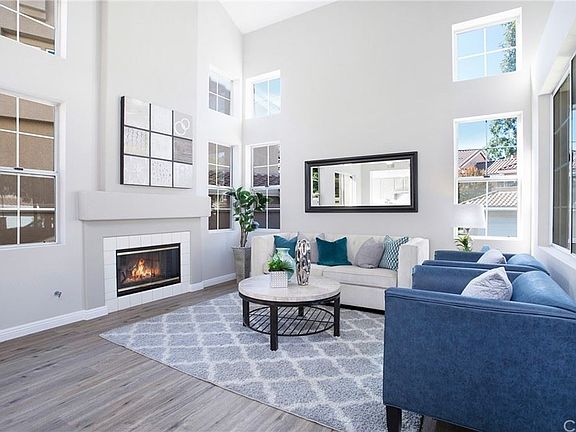 Freshly Renovated, Turnkey Townhome with Rare Oversized Private Driveway and Large 2 Car Garage in the wonderful community of Sonoma Court! Light and bright, the front porch entry opens to soaring ceilings, and brand-new luxury vinyl flooring, new carpeting, and fresh paint throughout. Spacious living and dining areas include a fireplace, sliders to the outdoor space, and opens to the kitchen! The kitchen offers ample countertop space, recessed lighting, freshly painted cabinetry new stainless-steel dishwasher and gas range, and a pass through to the dining area! This unit's patio is large and private with plenty of room for outdoor living! Upstairs you'll find two bedrooms with connecting bathroom, dual sinks, painted cabinetry, new shower/tub, tile, flooring, fixtures and lighting! The master bedroom offers high ceilings, plenty of room for a king bed and a large closet with mirrored sliders. Additional features include: upgraded baseboards, new range hood, new ceiling fan and more! Epoxy coated floor and ample storage space in the expansive garage too! Fantastic end unit location both within the complex (pool and entry close) and within RSM; close to everything! Walking distance to St. Johns Elementary, RSM Marketplace and to O'neill Regional Park offering miles of hiking and biking trails! Enjoy Rancho Santa Margarita Lake and award-winning schools nearby. Close to 241 toll road too! This one is special! Welcome Home.