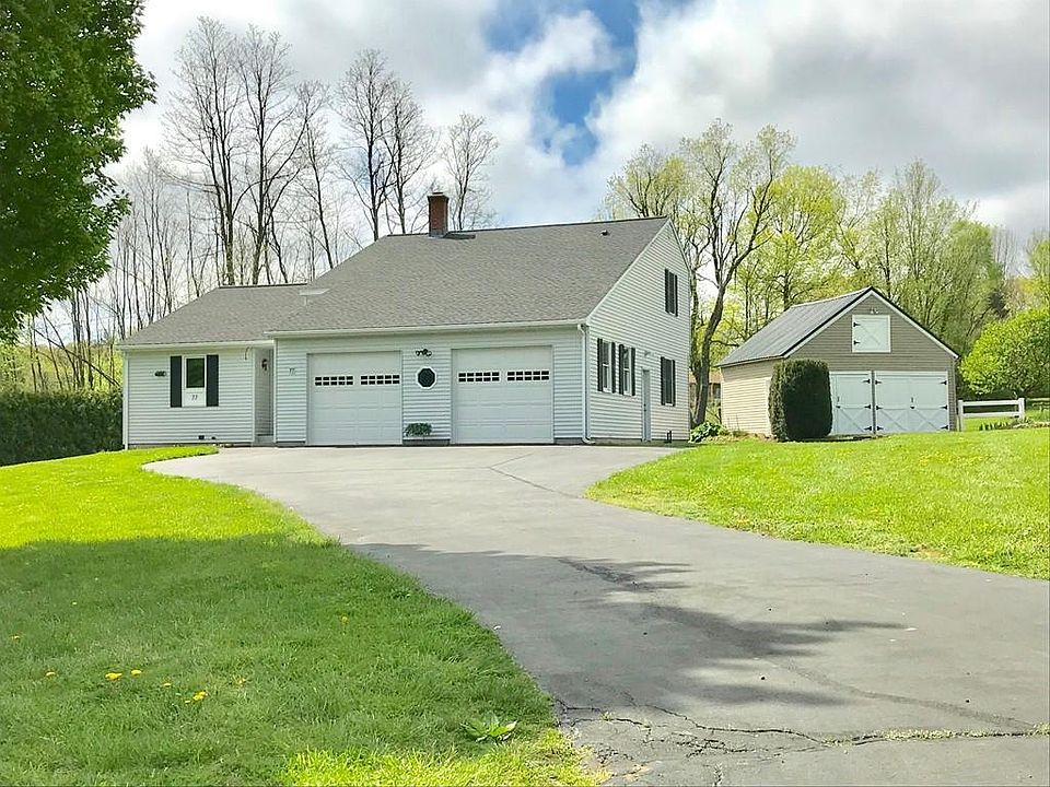 Located on a rolling hillside with 1.04 open, sunny acres is this immaculate Contemporary home. Within minutes of Umass, shopping and major routes, the proximity could not be better. Sporting an open floor plan - first floor Master Bedroom with bath and laundry make living on the first floor easy. Updated kitchen has granite counters and center island with seating. A wall of glass in the living room brings the beauty of outside in and leads to a spacious deck with canopy and brick patio - the perfect places for large gatherings or quiet evenings with a chorus of crickets serenading you. A two car attached garage, oversized 2 bay shed, public water & sewer and pellet stoves are just a few of this homes many ammenities. The perfect place to hang your hat - low Hadley taxes!