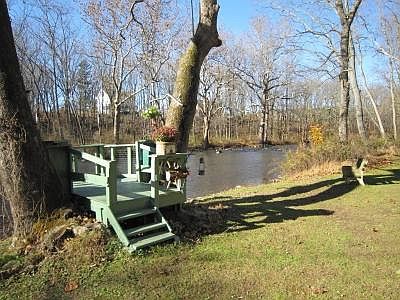 RIVERFRONT RETREAT! 2 cottages on over 3 acres of delightful riverfront property. The main cottage overlooks a stream-fed pond and offers a stone fireplace and wrap-around covered porch. The second cottage offers a large deck to sit back on and enjoy the river views. Both cottages include a kitchen, living room and bedroom. There's also an additional raised deck on the river's edge. The seller notes that neither home has ever flooded during the last 36 years that he has lived on the property.